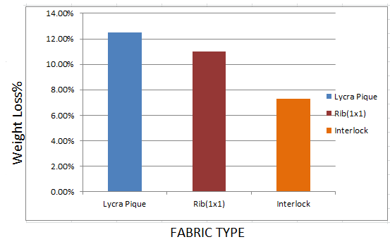 1. Firstly we considered 3 types of knit fabrics of different lots namely Lycra Pique, Plain Rib (1x1) & Interlock. 2. Then, for the first lot of Lycra Pique we found 12.5% weight loss% due to the action of Enzyme wash (1%) and then treated with silicon softener (1%). 3. Afterwards we found 11.03% and 7.3% loss for Plain Rib (1x1) & Interlock respectively for the same chemical actions.